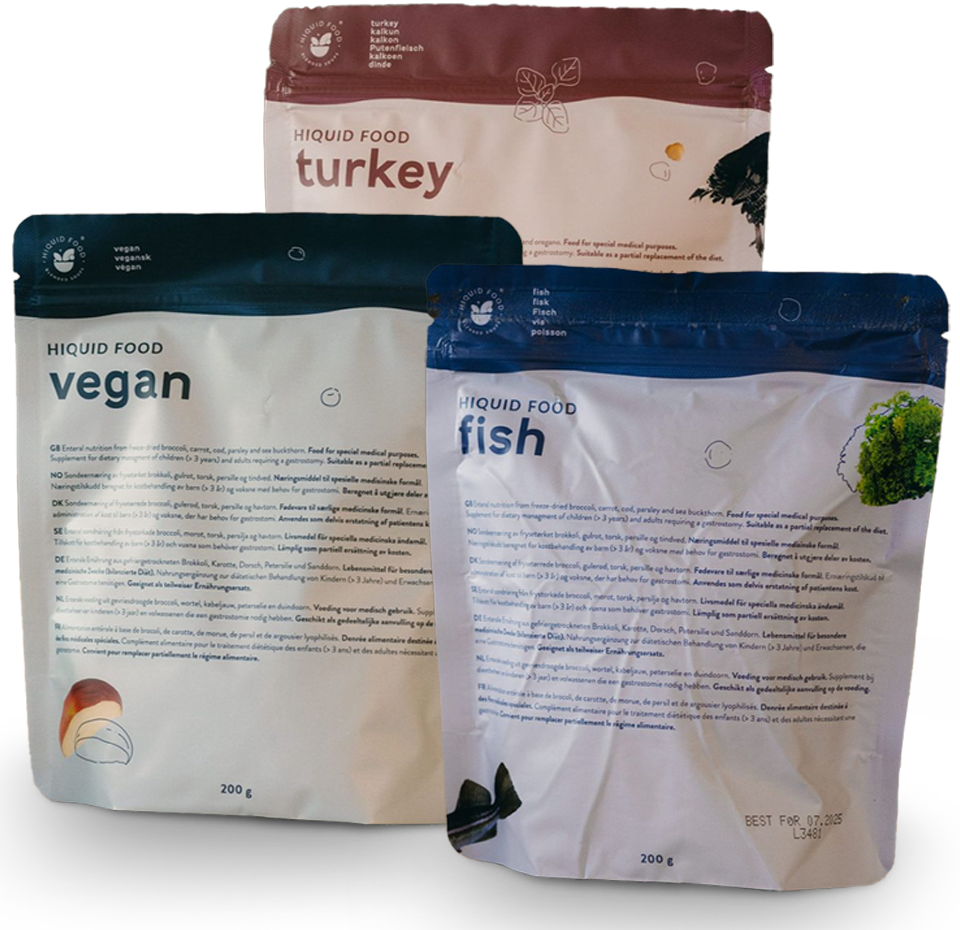 Sondemat og næringsdrikker i dag består ofte av industrielt fremstilt næring som kroppen til tider kan avvise. Med Hiquid Food har vi tatt et annerledes valg. Vi tar toleranseproblemer på alvor og bruker naturlige råvarer, utviklet av naturen selv, fordi dette gir en skånsom og naturlig tilnærming til ernæring. Toleranseproblemer som oppkast, kvalme, slim, diaré og forstoppelse har vist seg erfaringsmessig og dokumentert gjennom forskning å bli redusert ved bruk av råvarebasert sondemat og næringsdrikker.
